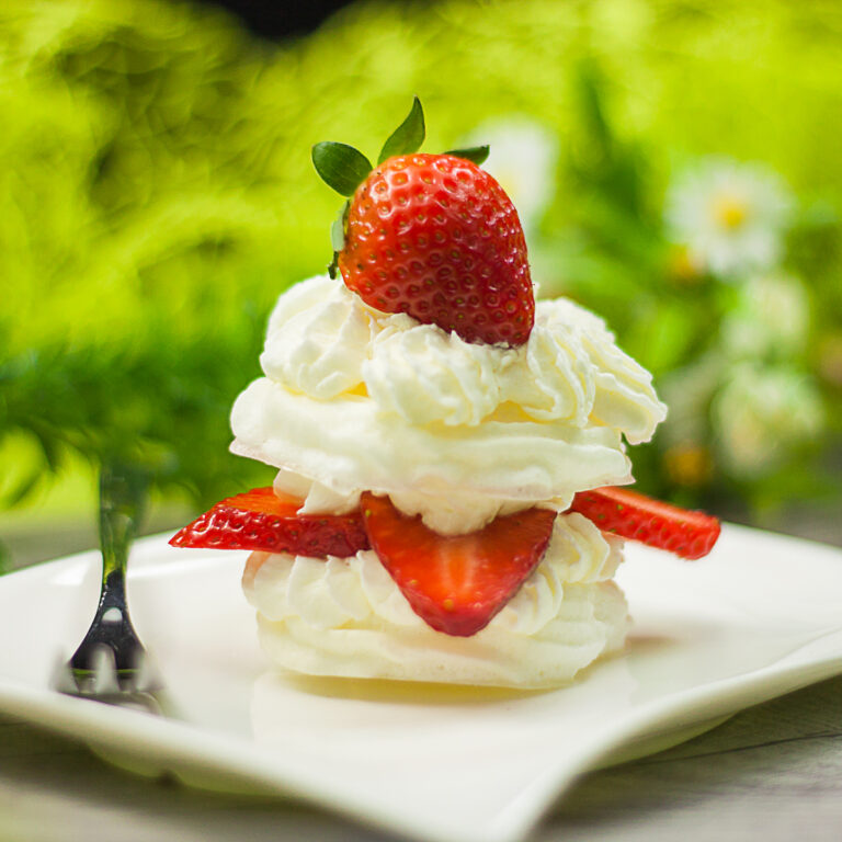 Low Carb Pavlova mit Sahne und frischen Erdbeeren