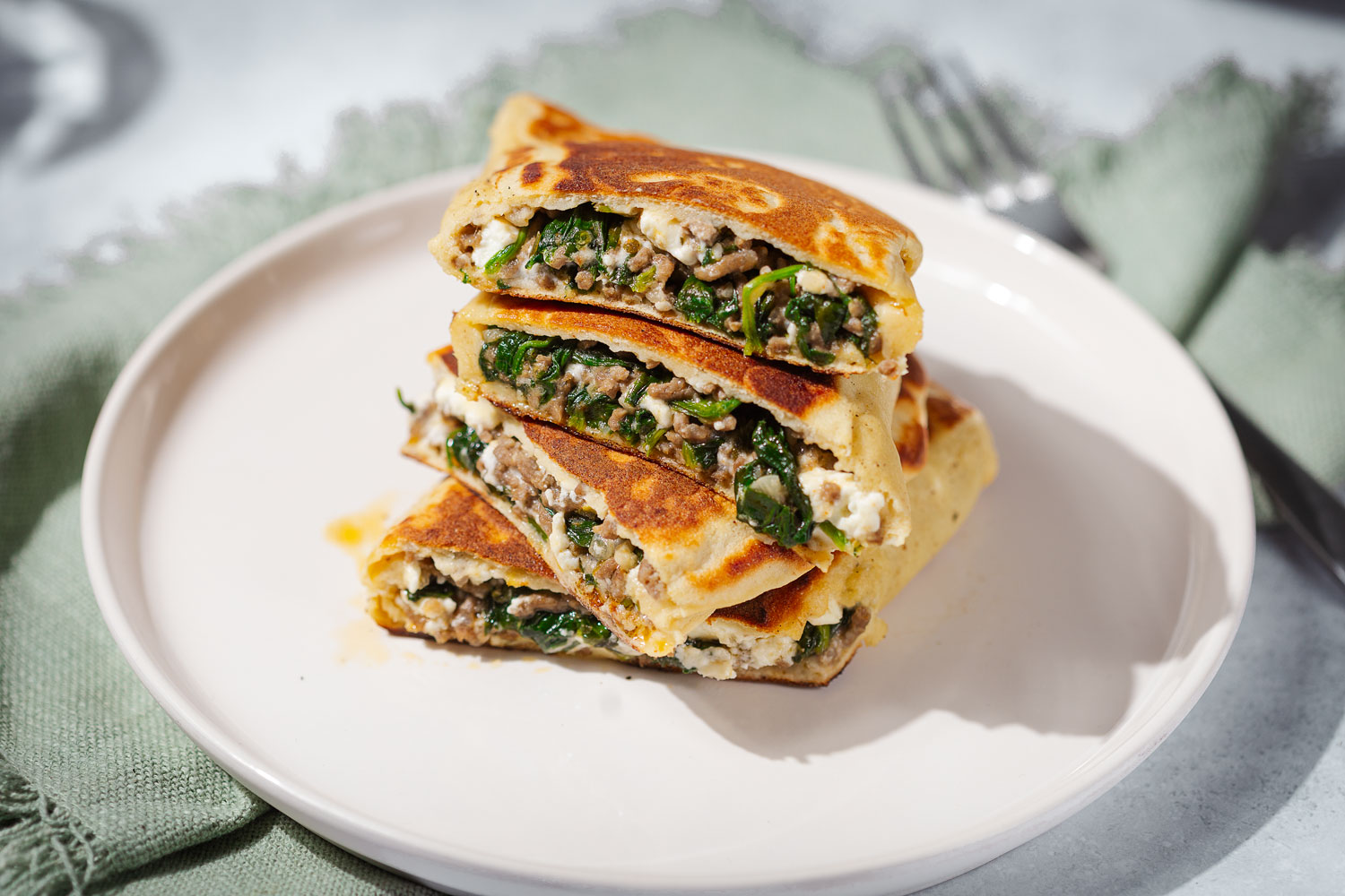 Ich wollte beides aufbrauchen und für mich klang die Kombi einfach super. Es war der Gedanke von „Wieso entscheiden? Ich nehm einfach beides“. Du die kannst Gözleme natürlich auch vegetarisch oder nur mit Fleisch füllen.